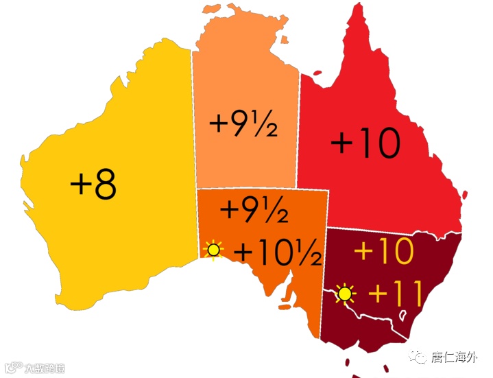 维州、新州、南澳、塔州和首都领地都采用夏令时规定。