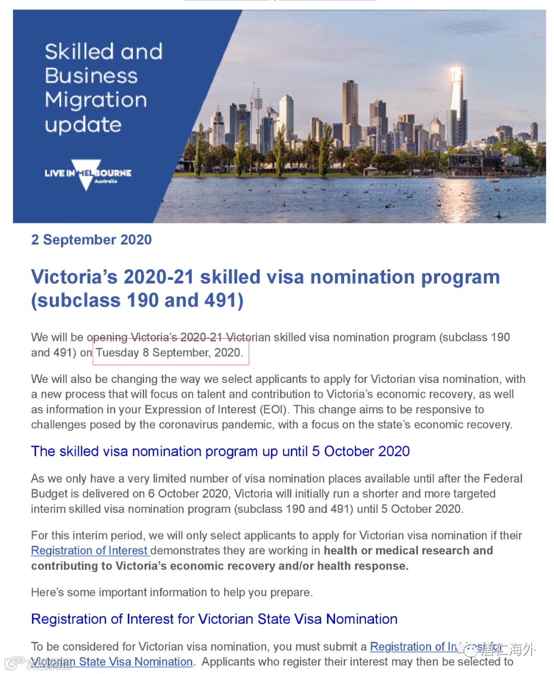 申请人必须在在9月21下午5点前提交Registration of Interest for Victorian State Visa Nomination!