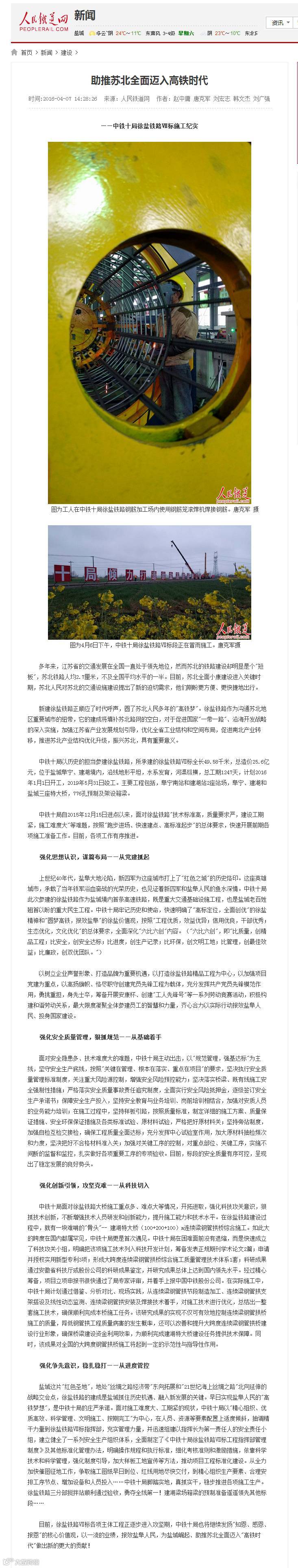 【新闻直通车】人民铁道网:助推苏北全面迈入高铁时代——中铁十局徐盐铁路Ⅶ标施工纪实