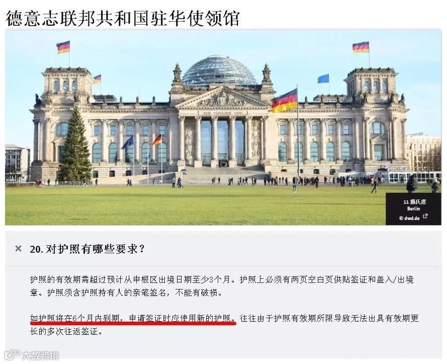 德国:如护照将在6个月内到期,则应在申请签证时使用新的护照