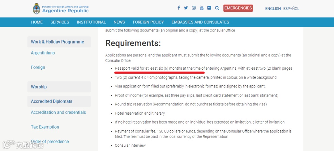 阿根廷:入境时,要求护照至少有6个月的有效期