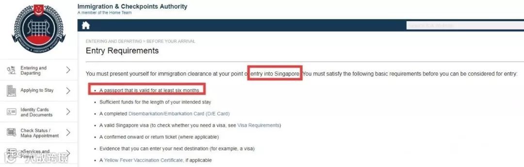 新加坡:要求在入境时,护照有效期必须要在6个月以上