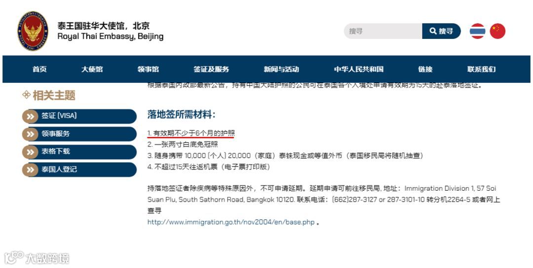 泰国:申请落地签需提供有效期不少于6个月的护照