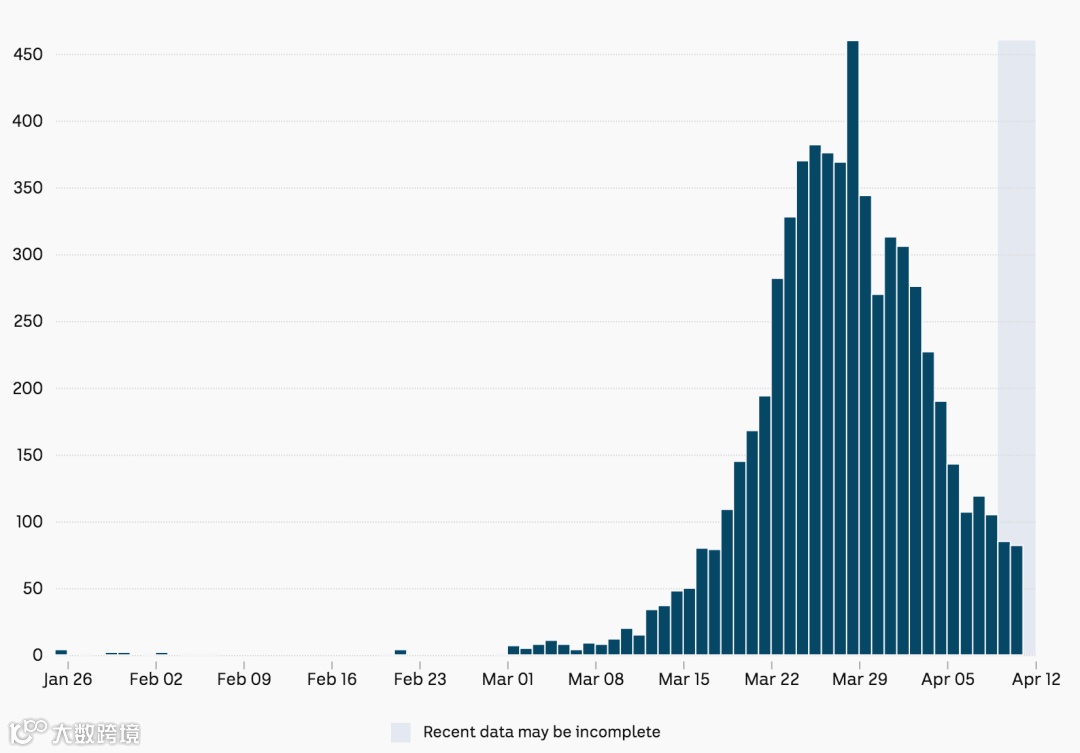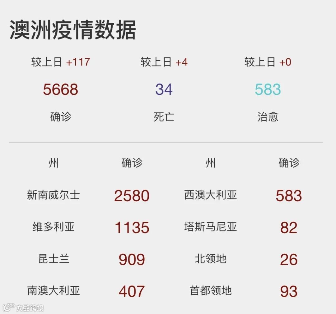 最近的澳洲增长曲线日益趋缓,由最开始的指数增长变成了现在平稳数值