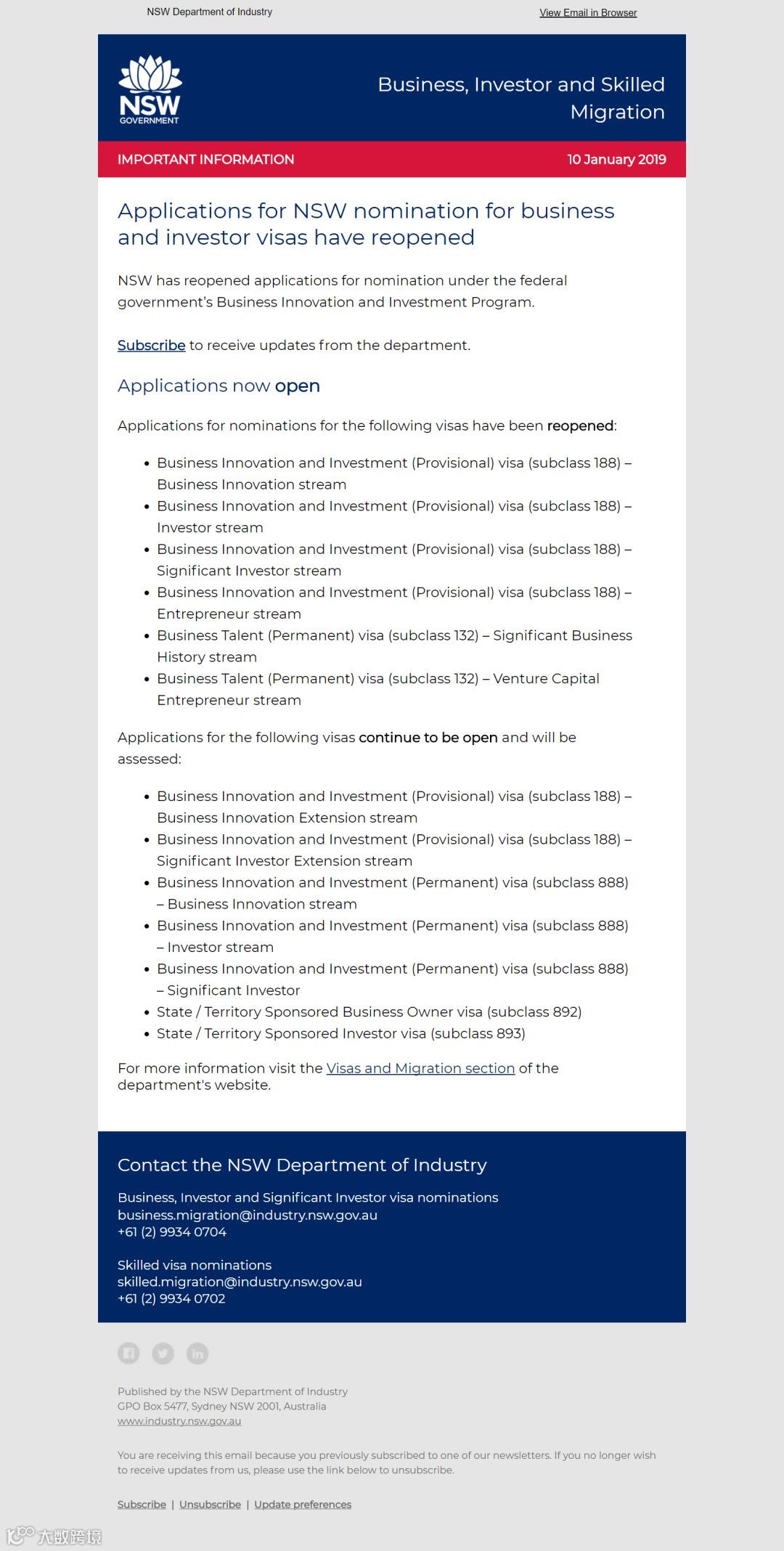 好消息来了,今天(1月10日)澳大利亚新南威尔士州(悉尼)政府宣布,即日起开放部分商业移民类别的州提名申请。