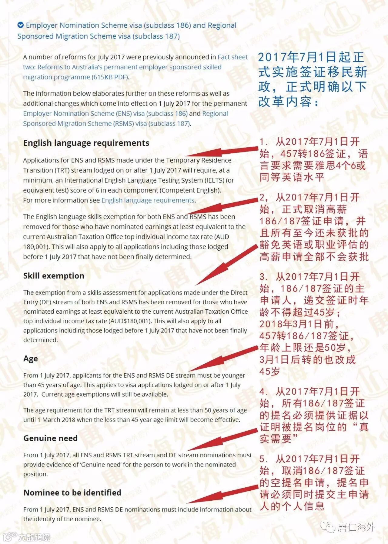 1. 从2017年7月1日开始,457转186签证,语言要求需要雅思4个6或同等英语水平