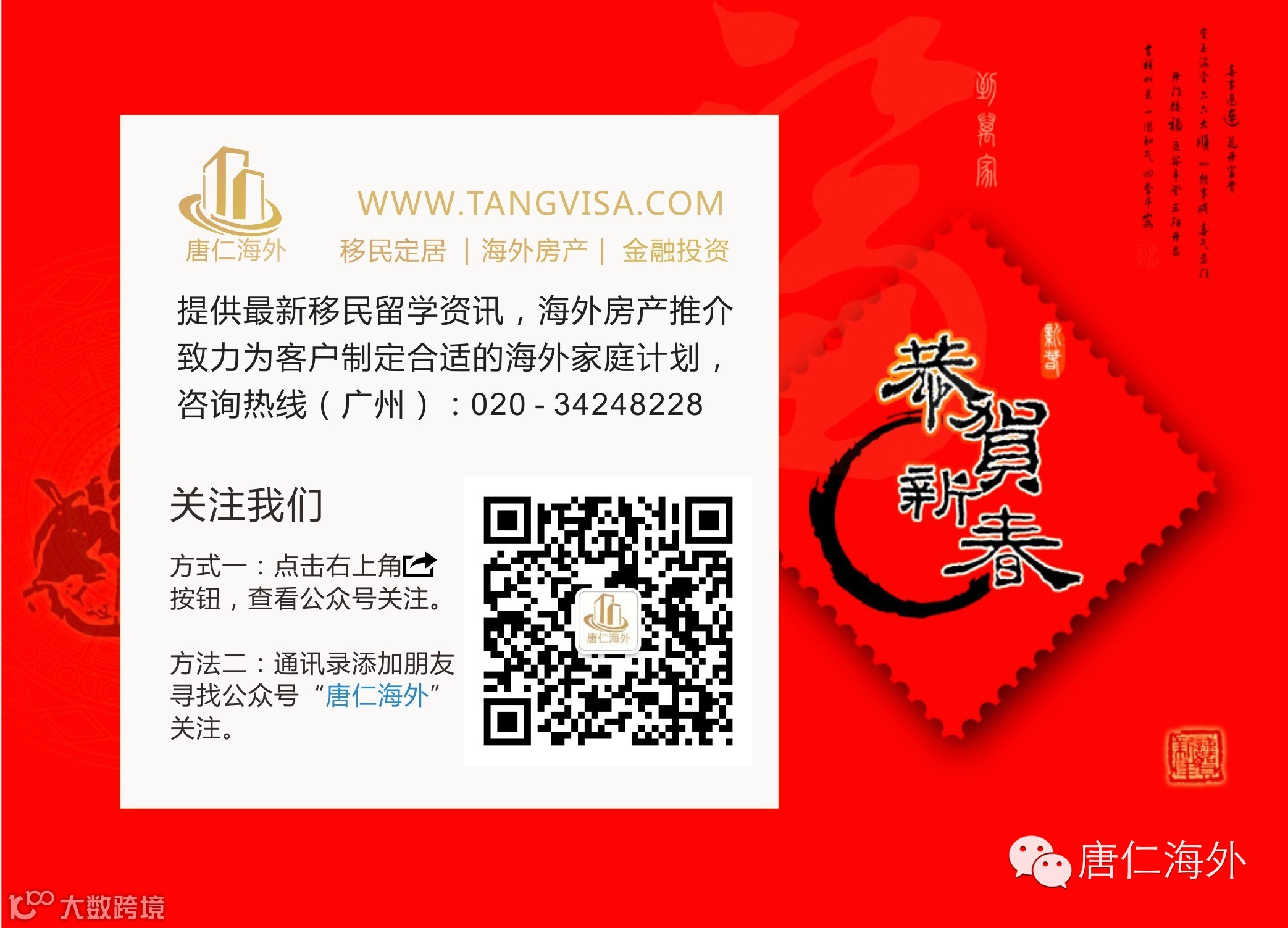 玉羊成群结伴来,紫气东升羊开泰。吉祥如意祝福传,迎纳‘羊财’门大开。羊头顶开了新年的大门,羊角指出了开拓发展的目标,羊眼目视着希望的未来,羊尾巴扫除一切艰难险阻,吉祥的羊胡须是享受幸福长寿健康的标志。2015年,“唐仁海外”将一如继往为各界朋友提供最新移民留学资讯,海外房产推介,为您制定合适的海外家庭计划。“唐仁海外”大年初八启市大吉,再创辉煌。
