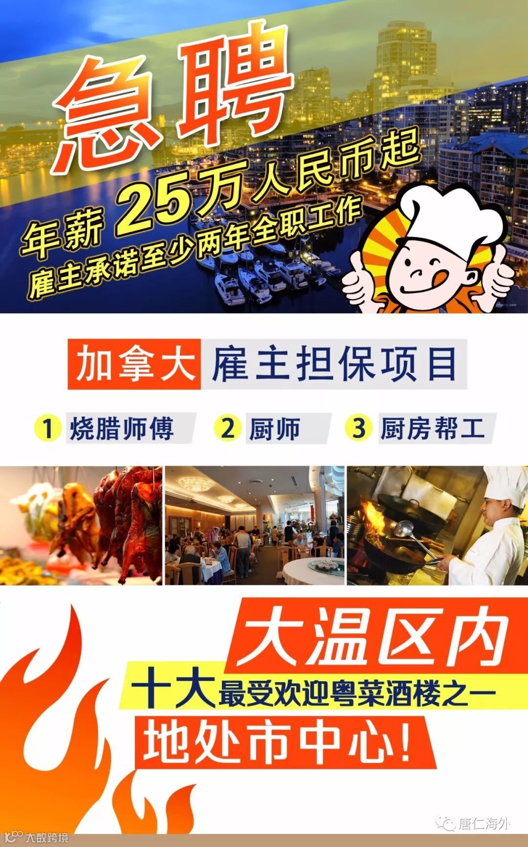 月薪:炒菜师傅:加币4100元;烧腊师傅:加币4500元