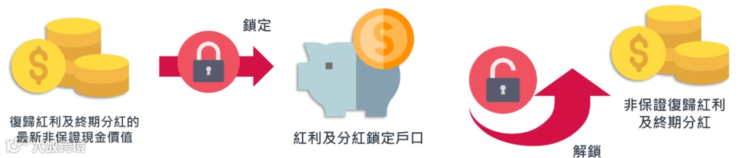 除了锁定红利外,有的产品还新增了“红利解锁”功能。需要现金就“锁定红利“,继续增值就“红利解锁”。经济下行就“锁定红利”,经济向好就“红利解锁”。不同的经济周期做不同的选择,进可攻退可守。