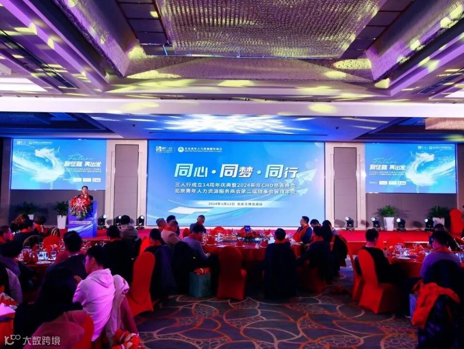 2024年1月12日,“三人行14周年庆典 CHO 慈善晚宴及北京青年人力资源服务商会管理年会”在北京艾维克酒店成功举办。