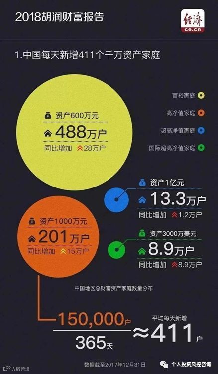 2018年《胡润财富报告》数据显示,大中华区600万资产富裕家庭总财富达133万亿,是GDP的1.5倍。
