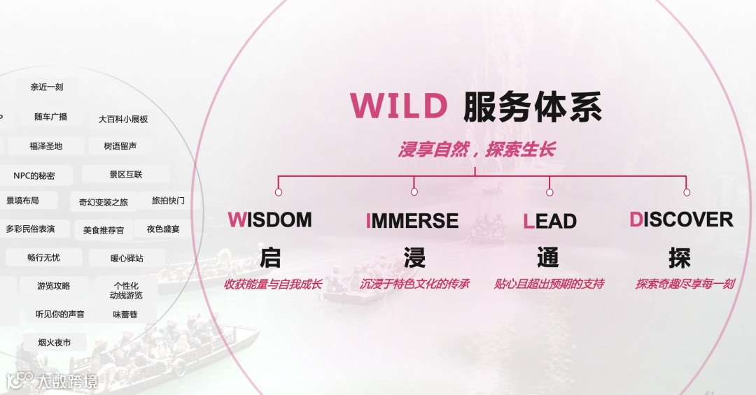 自然人文产品线-「WILD服务体系」:浸享自然探索,从启迪、沉浸、引导到发现,重塑人与自然的价值连接。