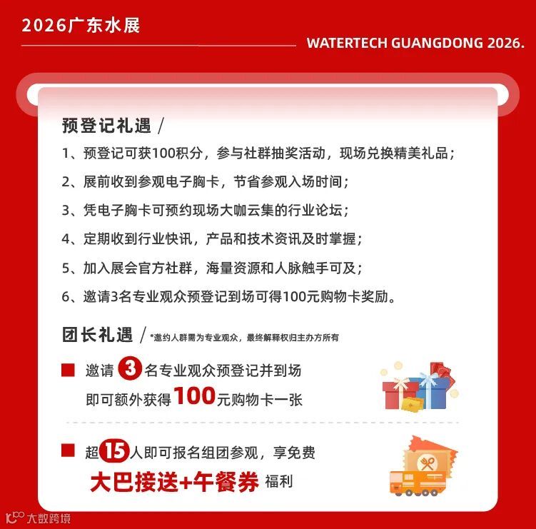 从河源村民的溪水桶到余杭货架上的空瓶,从家庭厨房的净水需求到社区公共的用水保障,饮水安全的渴望从未如此迫切。2026 广东水展,36,000㎡展示范围、2 万件展品、800 + 品牌齐聚一堂,用技术驱散焦虑,用方案填补缺口,用福利降低门槛。