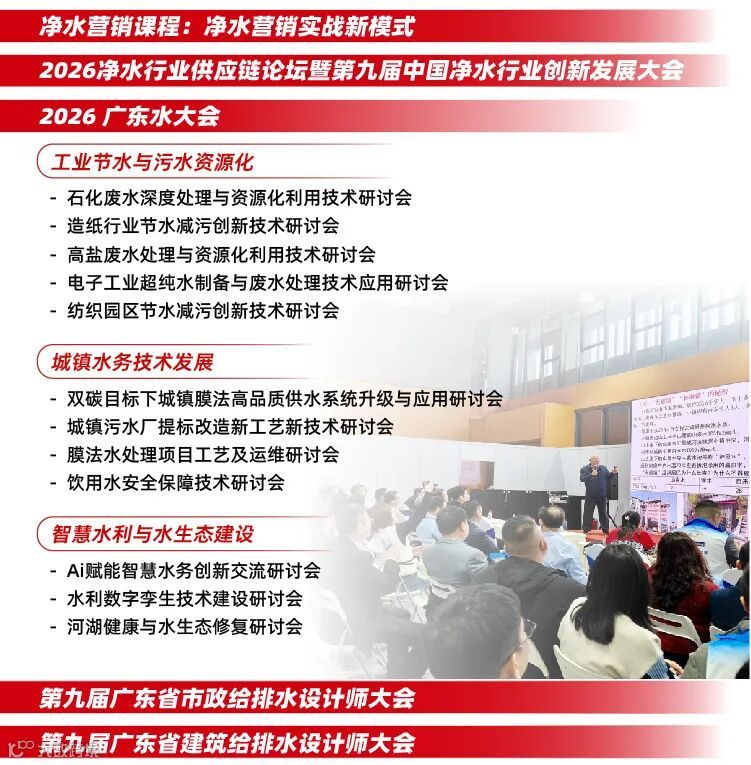 如何打破这些阻碍,让高端净水器真正“飞入寻常百姓家”,这既需要整个行业齐心协力、积极行动,也离不开有力的政策引导与广泛的知识普及。2026广东水展正是这样一个汇聚各方智慧与力量的优质平台,本届展会精心打造的10 +主题论坛。在这里,权威的政策发布将为行业发展指明清晰的方向,让企业紧跟政策导向,研发出更贴合市场需求、性价比更高的产品;深入的行业知识分享,能让从业者深入了解行业动态、掌握前沿技术,从而提升产品品质与服务水平。