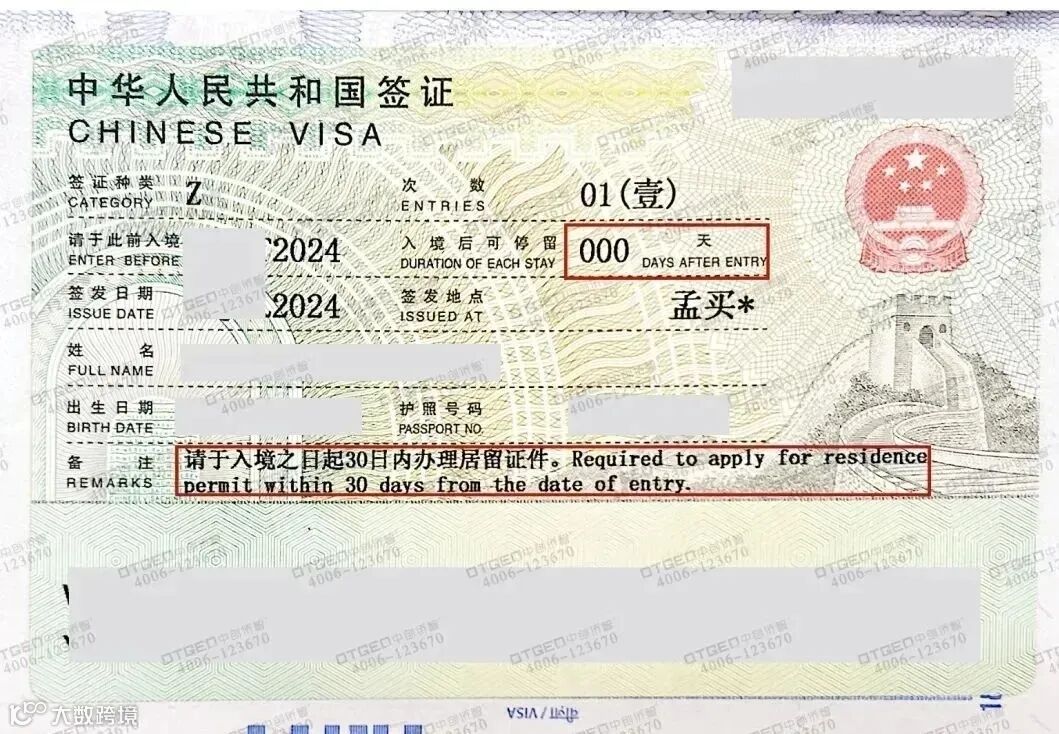 申请人获得《外国人工作许可通知》后,凭该通知前往中国驻外使、领馆申请办理职业签证(Z 字签证)。申请 Z 字签证时,需提交《外国人工作许可通知》、护照、签证申请表、照片等材料。Z 字签证通常为三个月一次入境有效,无停留期,申请人需在入境之日起 30 日内,在当地公安机关办理居留许可。