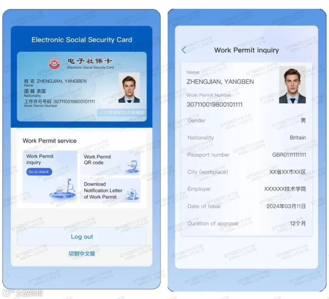 申请时,需提交《外国人工作许可通知》、护照、入境证明、聘用合同、体检报告等材料。经审核通过后,申请人将获得含有工作许可信息的电子社会保障卡,这是外国人在中国合法工作的重要凭证。(按照人社部相关工作安排,自2024年12月1日起,外国人工作许可证与社会保障卡融合集成,不再发放实体外国人工作许可证。)