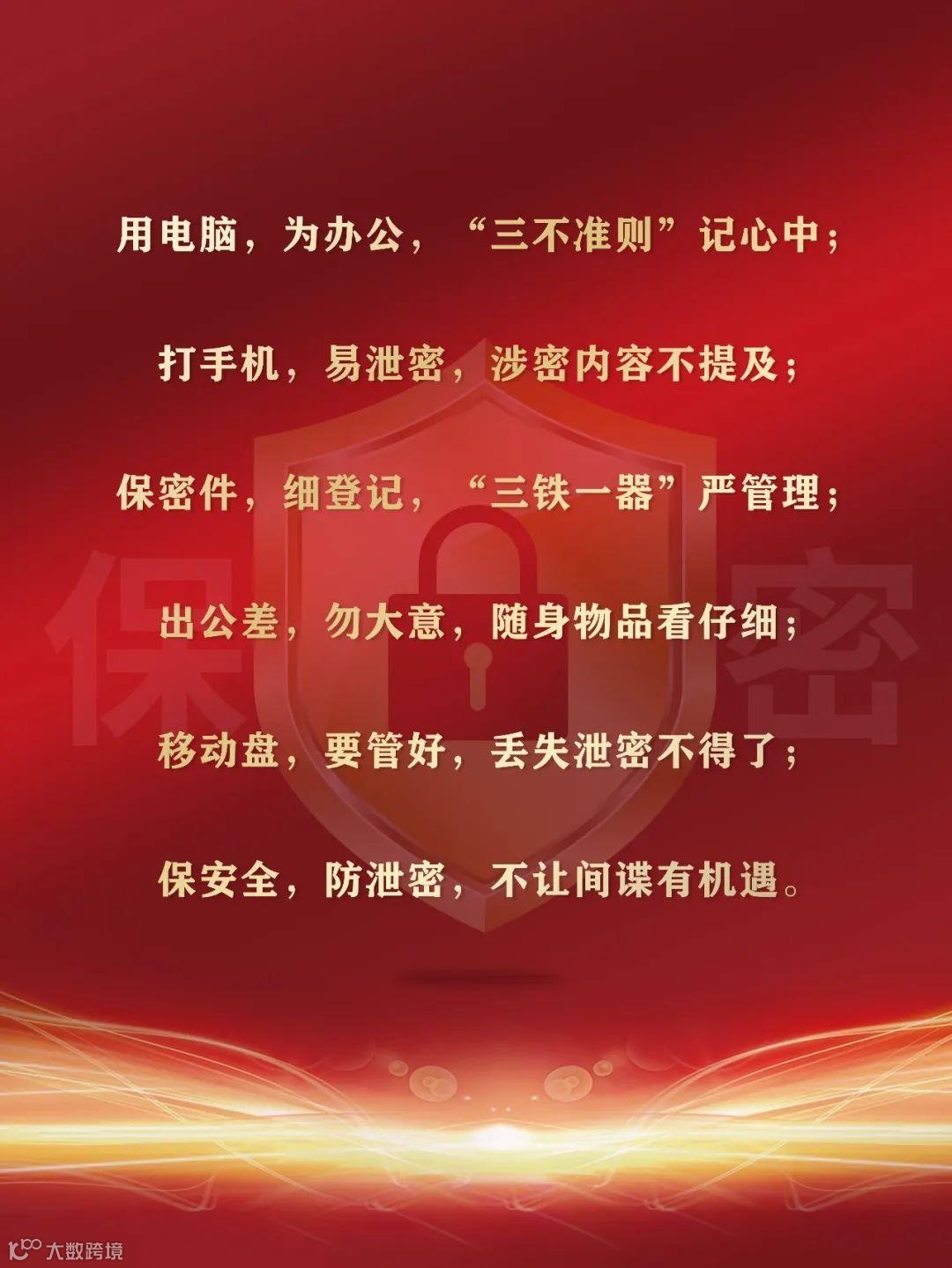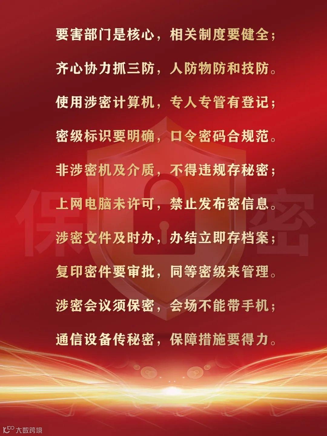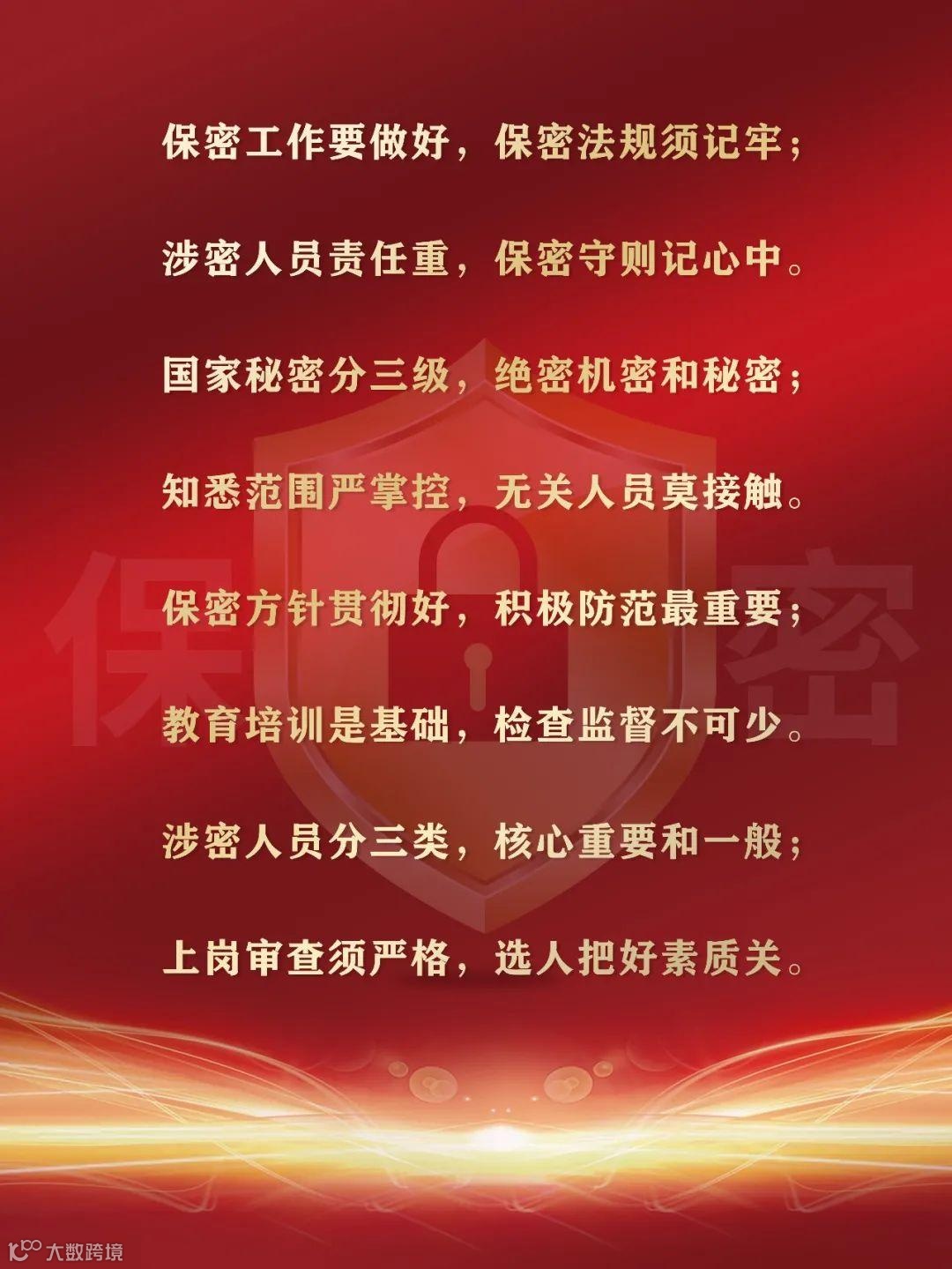 新时期新征程,保密工作也面临严峻、复杂的考验,一定要强化保密意识,严守保密纪律,提升保密素质,筑牢新时代维护党和国家秘密安全的坚固防线。