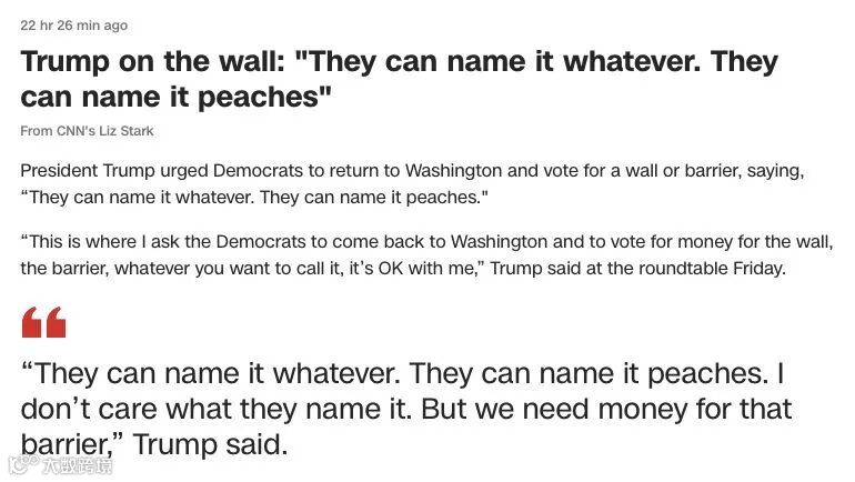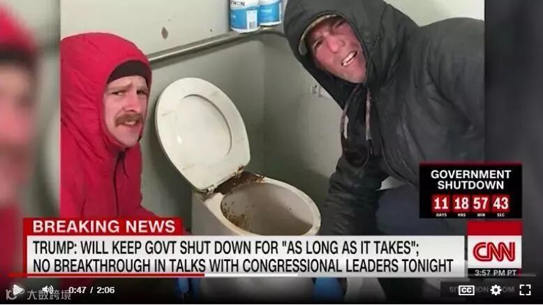 由于高达57亿美元的美墨边境修墙预算迟迟得不到国会的通过,由于特朗普和民主党之间的针锋相对、互不相让,美国政府从去年12月22日便开始部分关闭。
