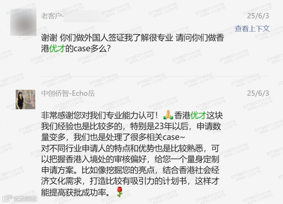 在这样的市场环境下,中创侨智在办理香港优才、高才等身份业务时,始终坚持诚信原则,从不承诺 “包过”。我们会在申请人自身条件的基础上,凭借专业知识和丰富经验,协助处理申请过程中的各项事务,比如精准解读政策要求、指导申请人完善材料、规避常见问题等,从而提高申请成功率,为申请者提供可靠的服务。