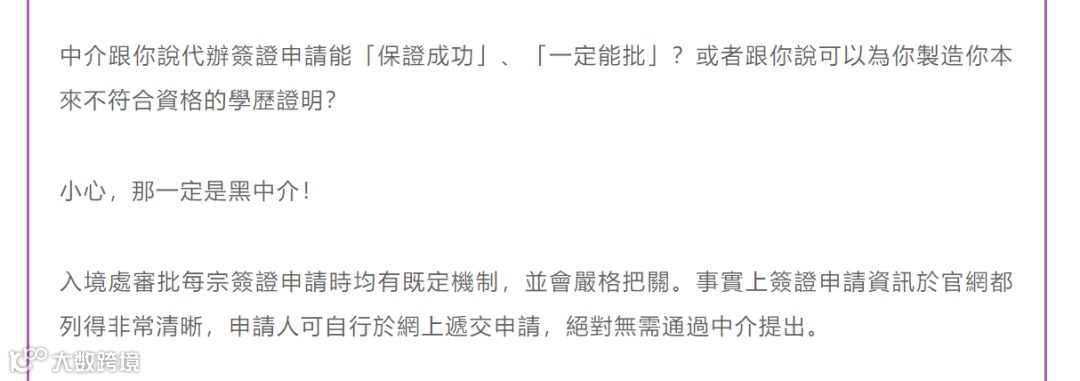 一是以 “保证成功” 为幌子,要求申请者支付远超正常签证费用的高额中介费用,甚至在收款后根本不向入境处递交申请;