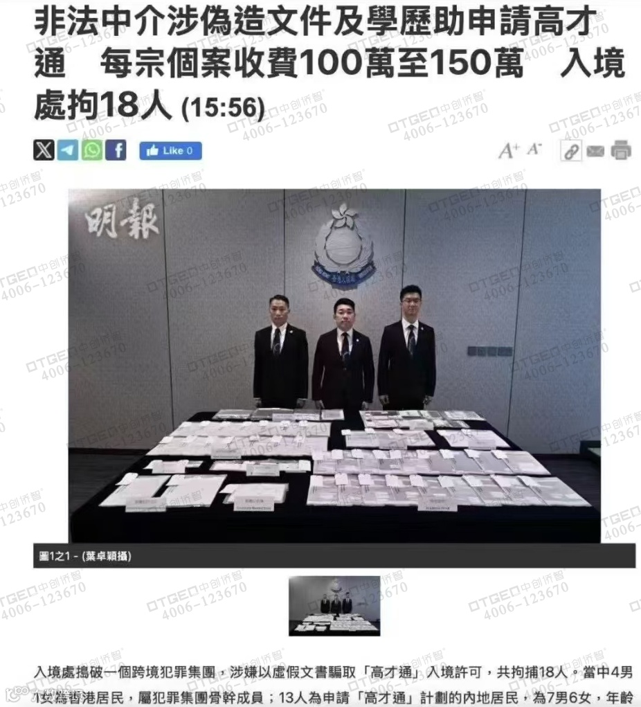 随着香港 “抢人才” 政策的持续推进,内地人申请来港的人数大幅上升。数据显示,2024 年全年,内地人士申请各类香港签证的数量突破 50万 大关,较上一年增长 28%。不法分子看准这一热潮,以 “保证成功”“独家渠道” 等虚假承诺为噱头,收取高额中介费用。