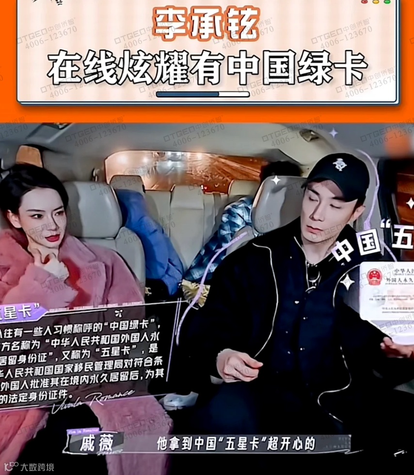Obtaining a Green Card: In February 2025, on the variety show "My Wife's Romantic Travel", Li Chengxuan proudly displayed his Chinese permanent residency ID card (commonly known as the "Five Star Card" or "Green Card"), stating that it is almost no different from Chinese citizens' ID cards and can enjoy many conveniences such as medical insurance, self riding high-speed rail, and facial recognition.