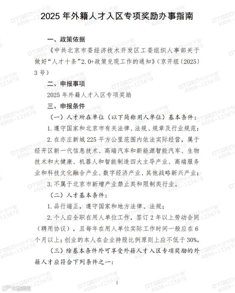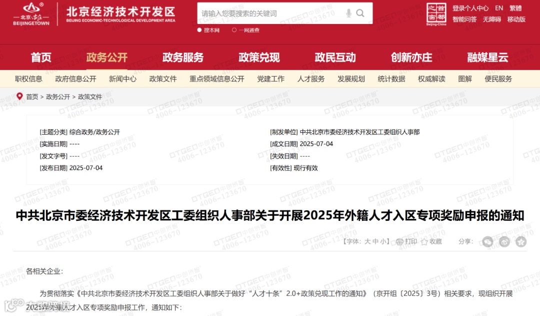 Recently, a favorable policy for foreign talents in Beijing Economic and Technological Development Area has drawn widespread attention: Foreign talents who meet certain conditions and hold Type A or Type B work permits can receive a maximum annual reward of 50,000 yuan. The application period is from July 7th to 31st. This is undoubtedly a great boon for foreign talents who intend to develop in Beijing. To be informed in a timely manner and smoothly enjoy the benefits of such policies, choosing a professional service agency for foreigners coming to China is of great importance. OTGEO is the ideal choice for you.
