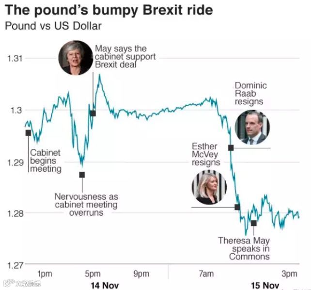 回顾上周,虽然脱欧进展迈出了重要的一步,协议草案赢得了英国内阁的支持。不过内阁政治动荡随之加剧,英国脱欧事务大臣多米尼克·拉布以及就业与养老事务大臣艾丝特·麦克维宣布辞职,强烈反对梅向欧盟提出的脱欧方案。英镑当即暴跌200个点。