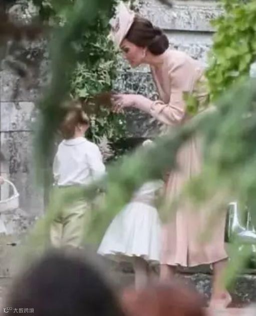 2017年,凯特王妃的妹妹Pippa的婚礼上,乔治小王子作为花童的一员,在现场,乔治忽然走到新娘小姨的后面,踩了她的婚纱。