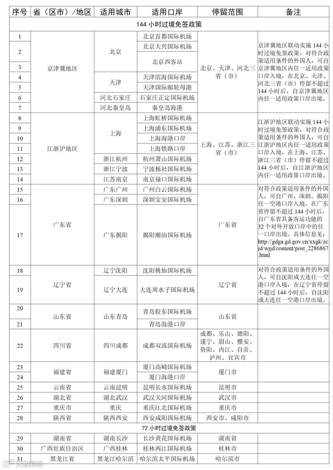 一是要属于72/144小时过境免签范围国家的公民(详细国家名单请看下表);