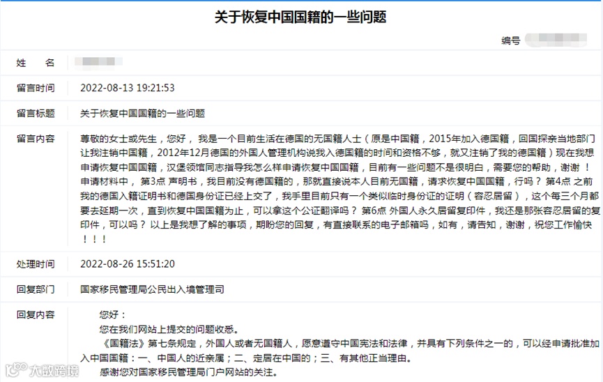 让我们首先来官方网站上留言的这位无国籍人士的留言和回复。