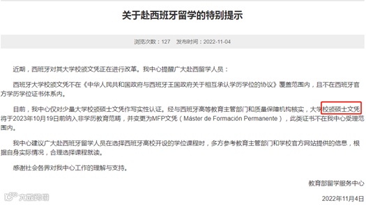 近日,教育部留学服务中心发布一则通知,提醒赴西班牙留学人员合理选择课程就读。公告里出现的校颁硕士文凭到底指什么呢?