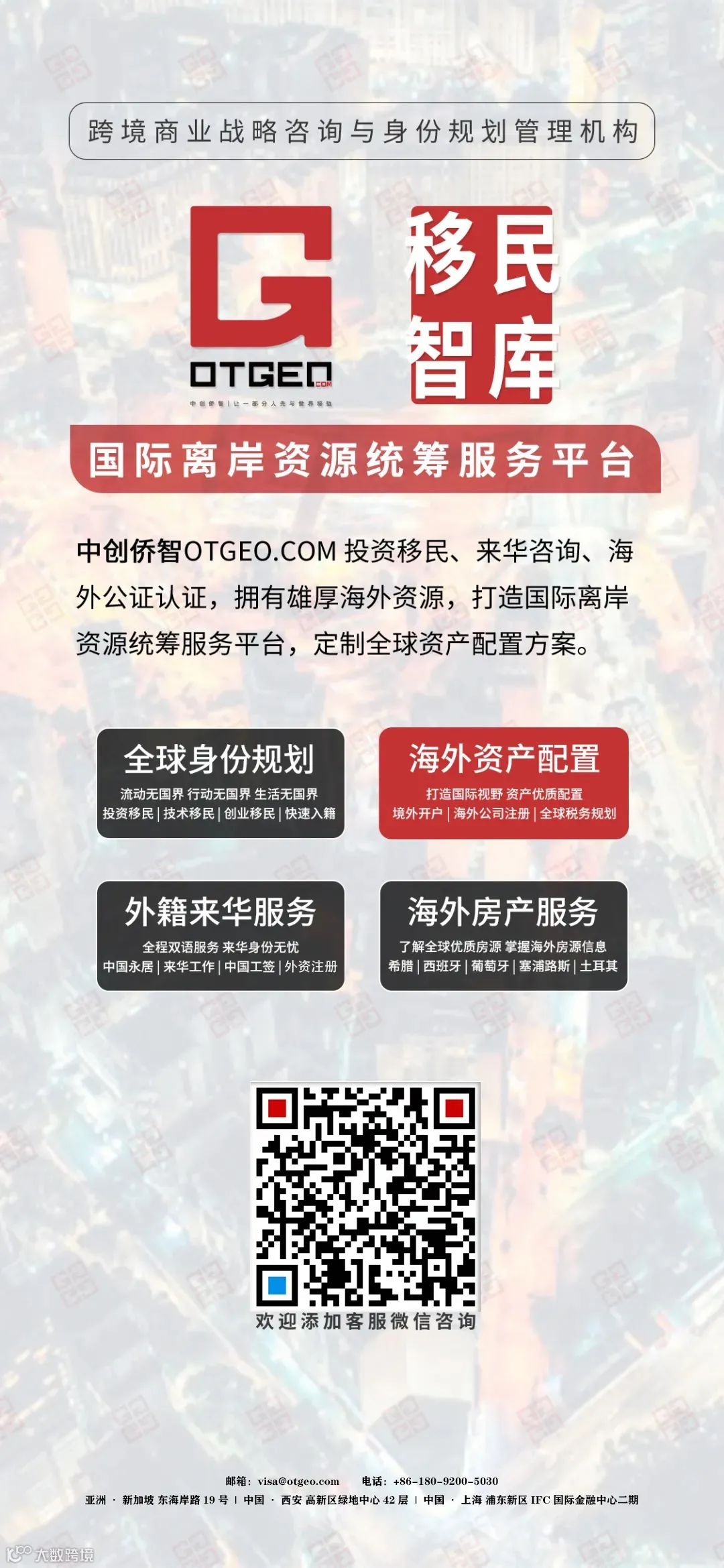 中创侨智是一家专注于外国人在华投资、公司注册、身份规划的专业服务机构。中创侨智有一支国际化的专业团队,专注于为有意向来华发展的外籍人士提供中国签证、工作许可、中国永居等身份服务。中创侨智汇集了丰富的行业经验,以及专业的技术服务。中创侨智专业解决客户外国投资移民需求,包括:外国企业来华投资、中短期签证服务、中国移民咨询、外商公司注册、外商财税规划等。中创侨智的服务团队拥有多年的中国投资与移民咨询经验,并且积累了上千组家庭的成功服务经验。中创侨智的服务团队不仅可以为客户提供全面的中国投资与移民咨询服务,而且能够提供具有针对性的、私人定制化的服务,以满足客户的各种需求。中创侨智力求为客户提供最完善的服务,通过一站式服务,为客户提供在华投资咨询、外商公司注册、中国长期身份等规划服务,让客户更加方便快捷地完成他们在华投资与移居需求。