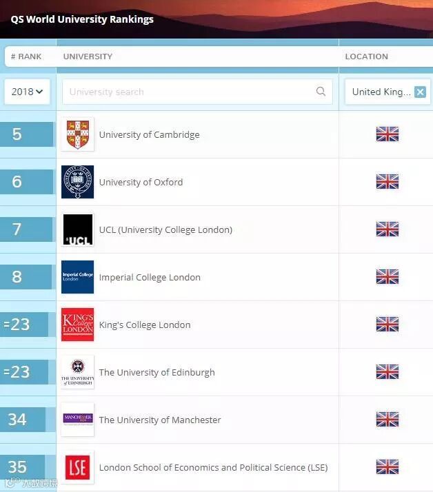 再说大学,2018年QS世界大学排名TOP 50,英国大学就占了9所(今年英国大学QS排名大都有些下降,但也不太影响他们的国际地位)。最最重要的是,英国大学硕士只需要一年就能读完。