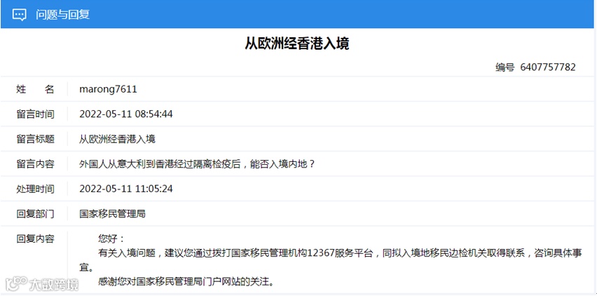 不少外籍朋友们纷纷私信中创侨智小编“海外回国可以先飞香港再回大陆吗?”,国家移民管理局官网上也有持同样疑问的人。