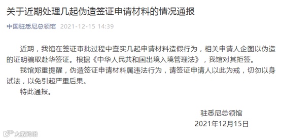 有些着急回国的申请人们便动起了歪脑筋,中创侨智小编提醒大家,签证资料造假风险太大,后果严重,建议申请人千万不要做。无论是哪个国家的使领馆对于申请人的资料都会做不同程度的背景调查,一旦查出是假材料,轻则直接拒签,重则拉入黑名单,对于申请人以后都会有影响,中国驻悉尼总领馆也发了处理造假的相关通报。