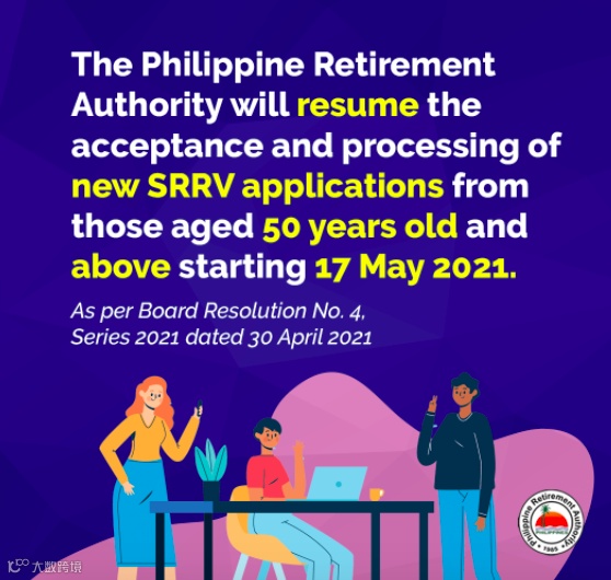 菲律宾退休署宣布将自2021年5月17日开始重新受理退休移民签证SRRV申请,但仅限于50岁以上的申请者。