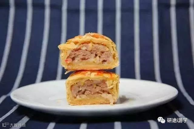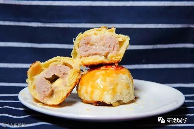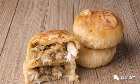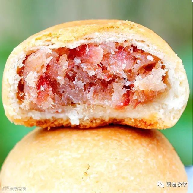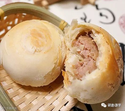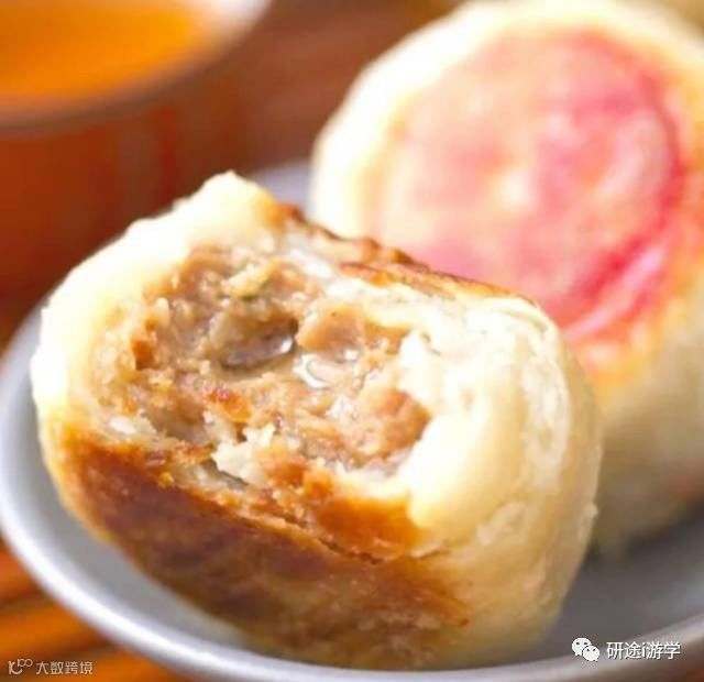 Fresh baked mooncake with pork, bacon and and bamboo shoots