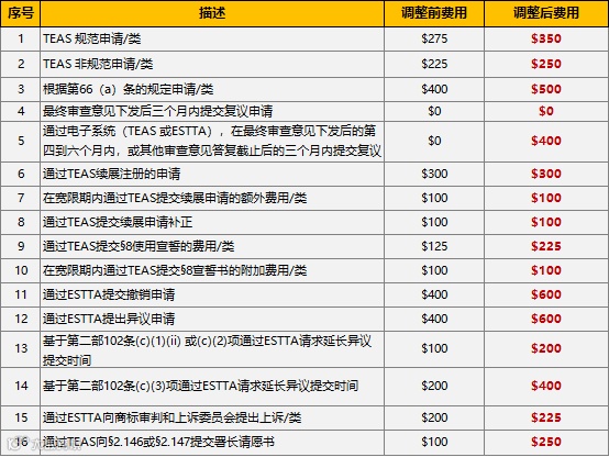 据悉,此次进行费用调整的目的是为了让商标局有足够的总收入来支持商标和商标审判与上诉委员会(TTAB)未来几年的运营总成本。