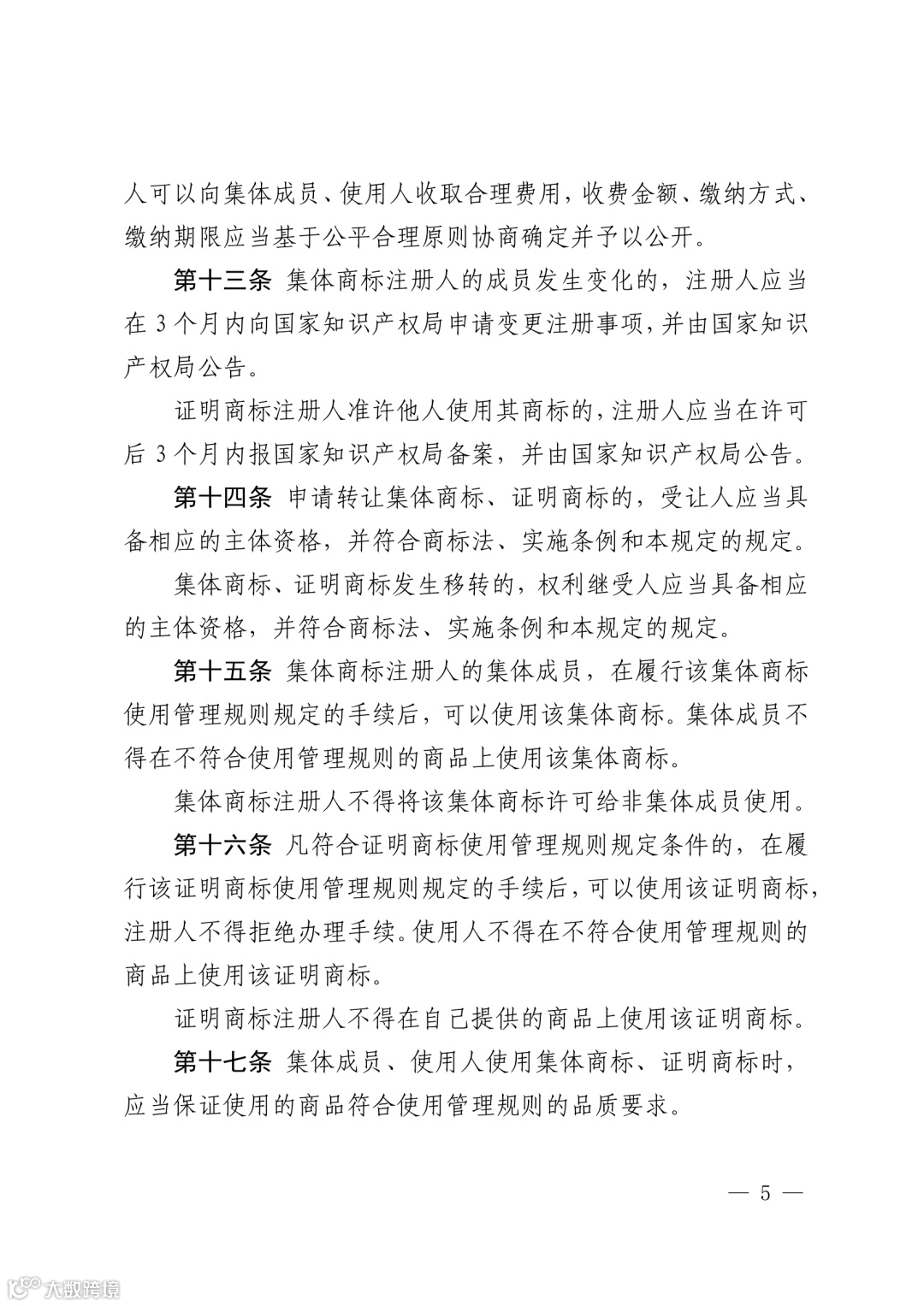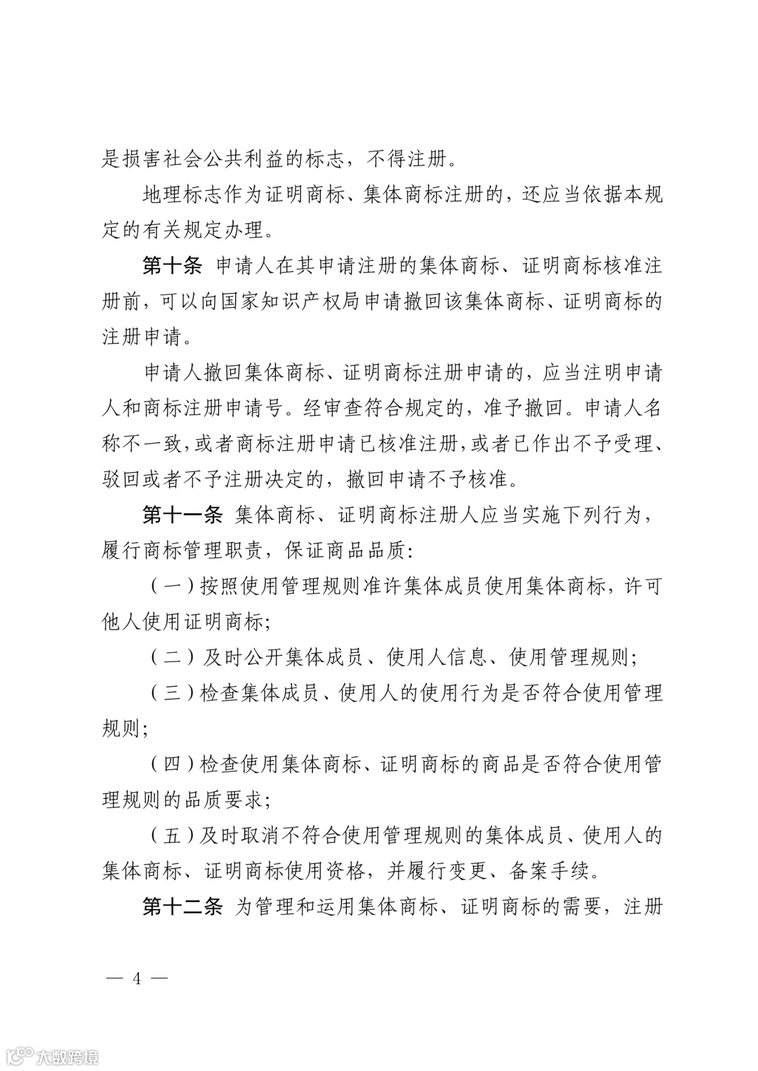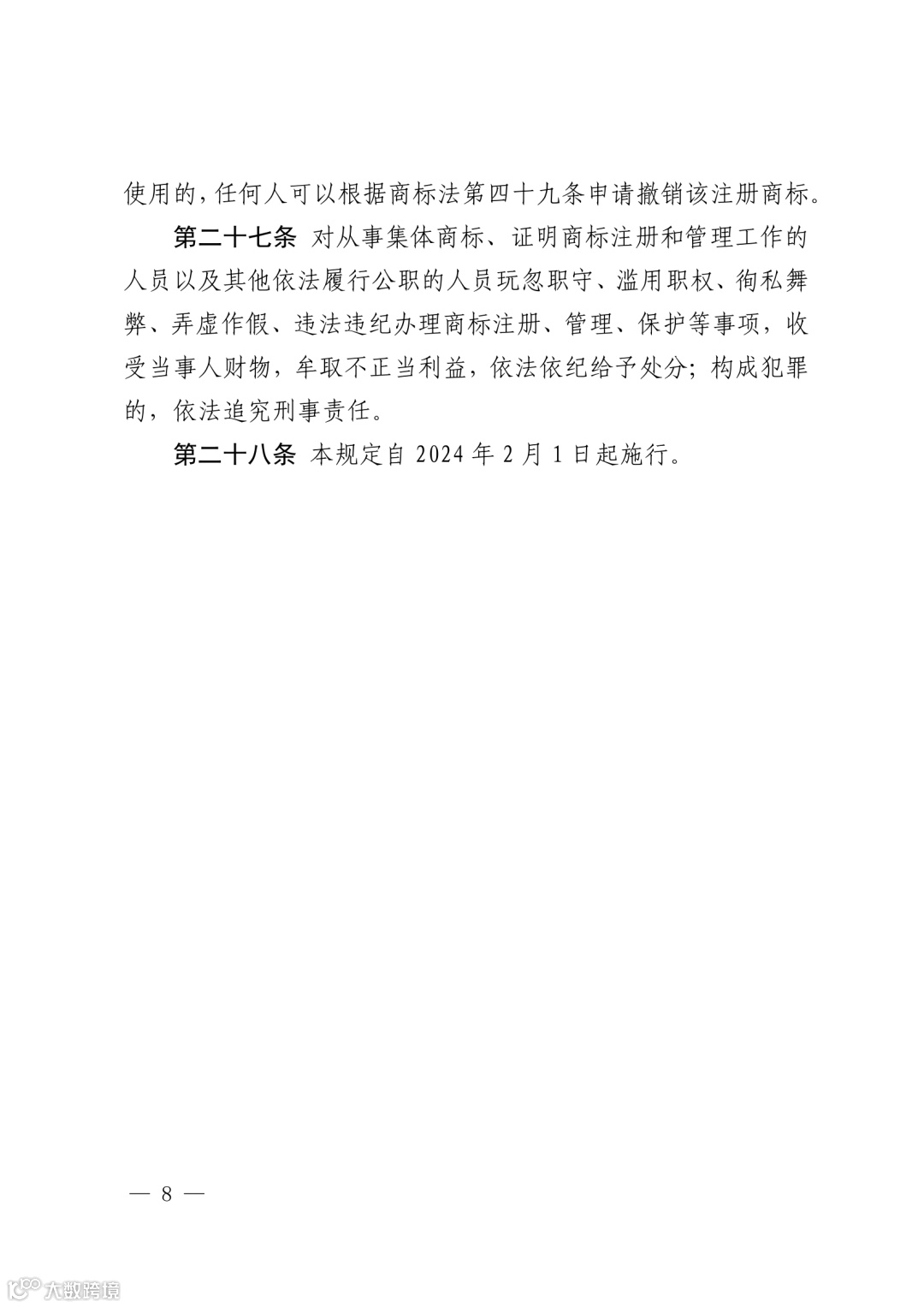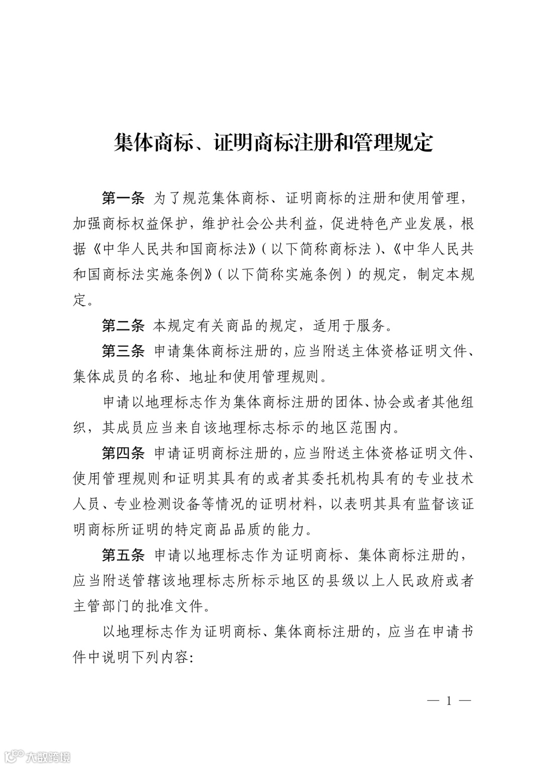 《集体商标、证明商标注册和管理规定》已经国家知识产权局局务会审议通过,现予公布,自2024年2月1日起施行。