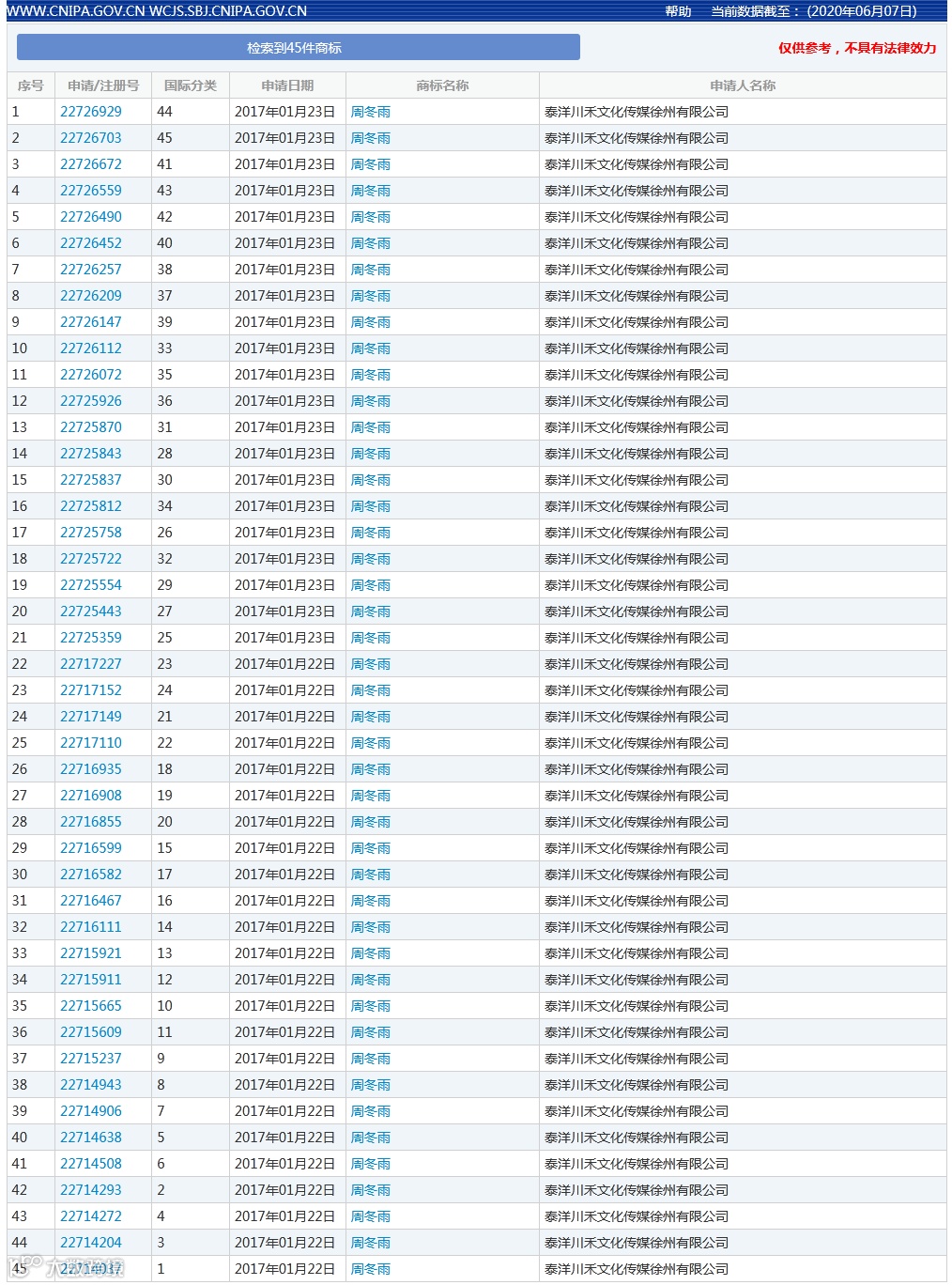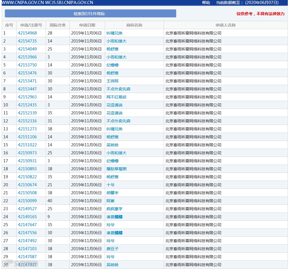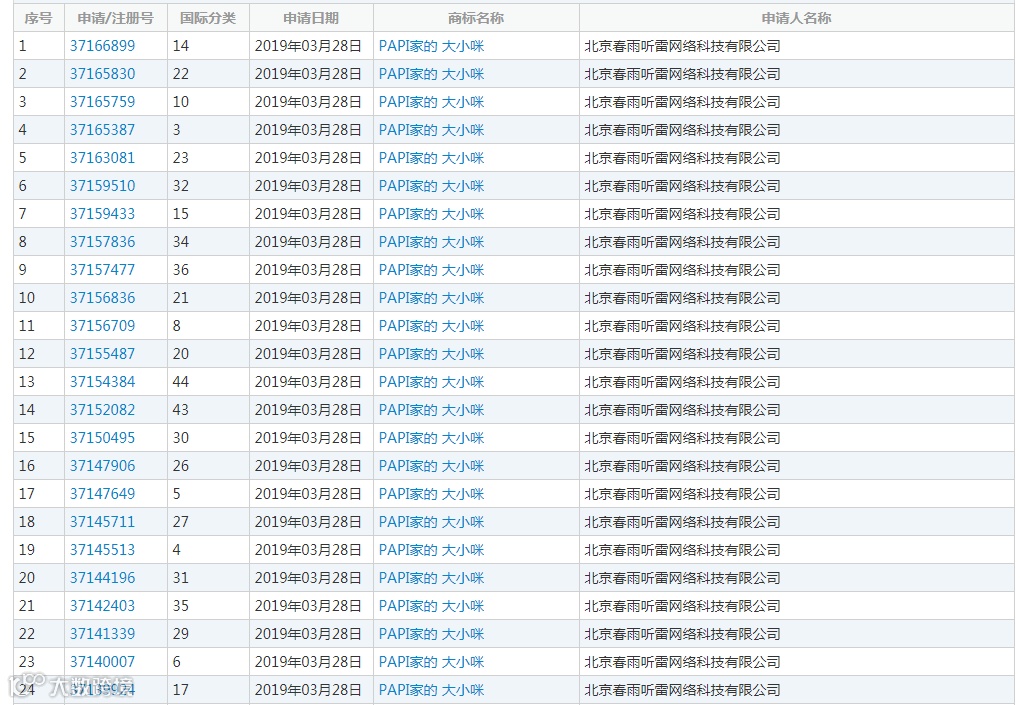 从该公司的内容简介上来看,该公司致力于发展网红经济。这一点从申请的商标上也能看出一二,PAPI、玲爷、爆胎草莓粥、杨舒惠等都是知名网红博主,且内容风格多样。
