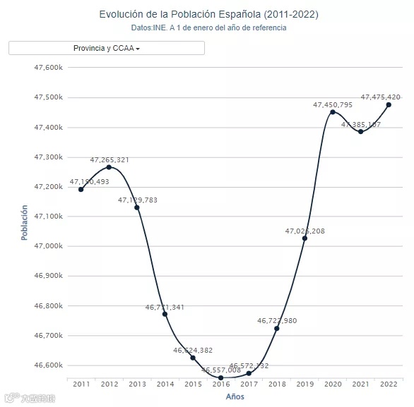 西班牙人口变化曲线:2011-2022