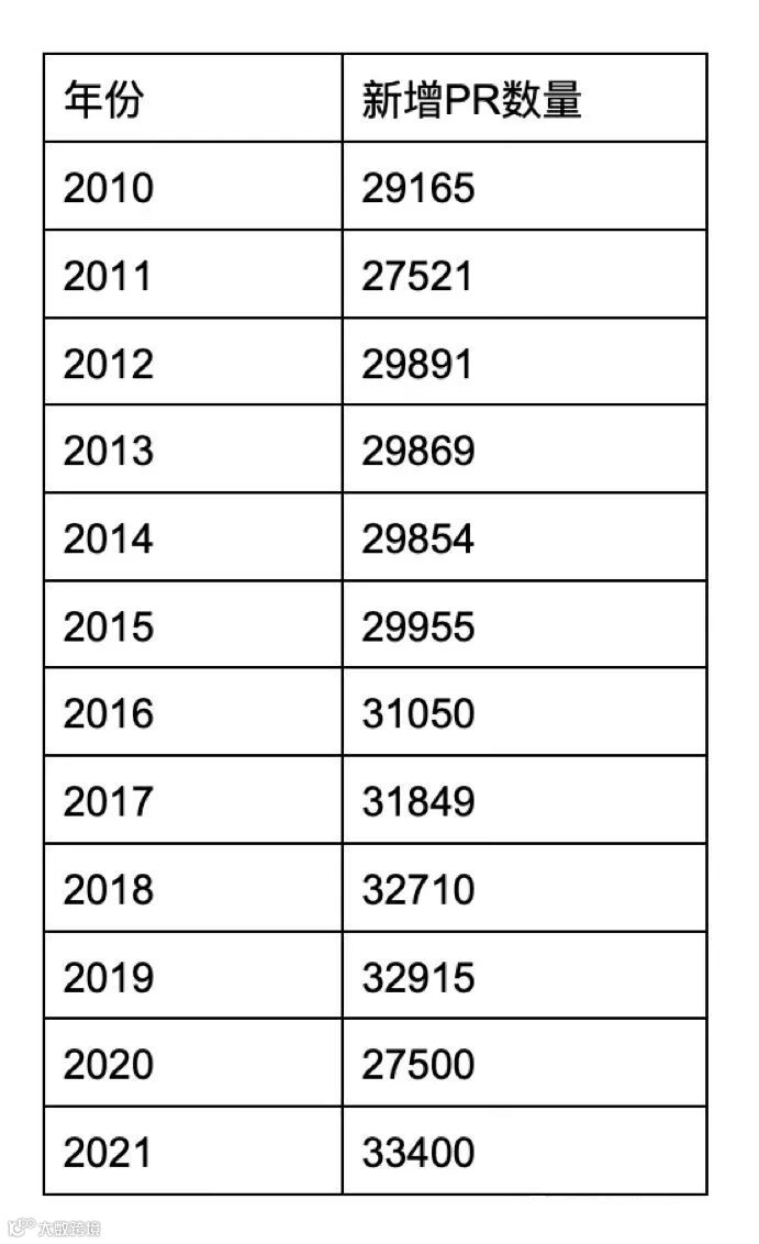 据了解,33400的PR数量创下了自2010年12年来的最高数量。同比之下,21500的新增外来公民数量则是有所下降。