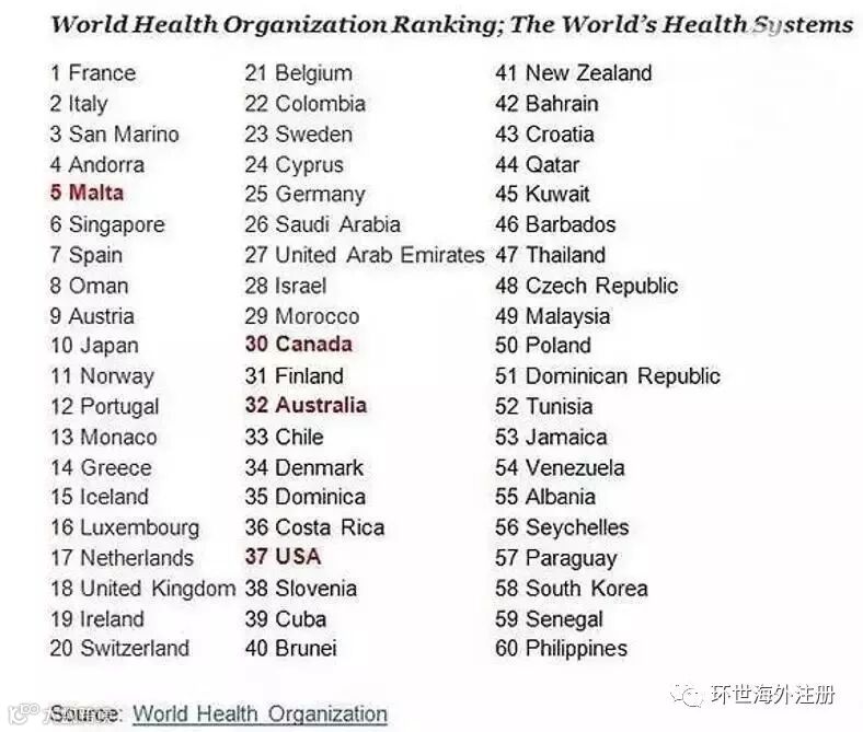 马耳他的医疗卫生系统在世界卫生组织的医疗标准排名中位列全球第5位。