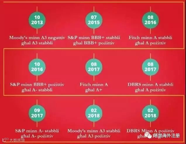 7、国债评级高:国际评级机构——惠誉、穆迪及标普,将马耳他国家评级评定为A级,意味着该国经济稳定、安全系数高。