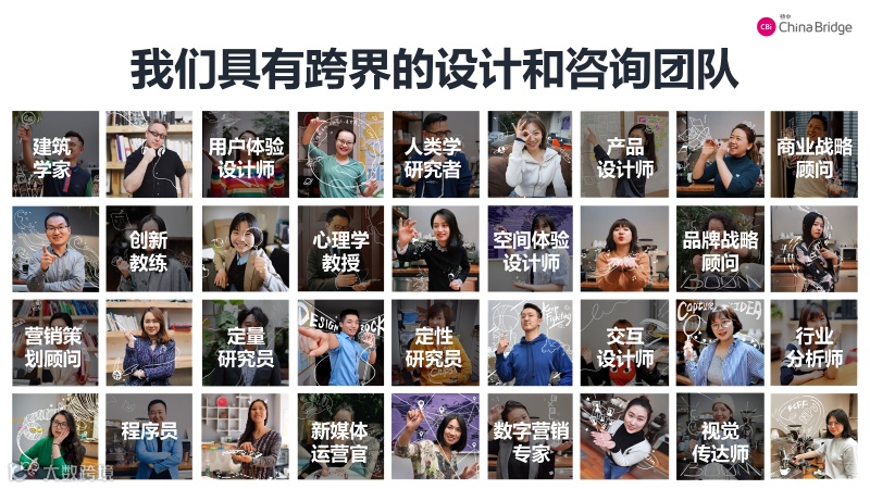 桥中(CBi China Bridge)是一家拥有国际化视野和全球优质设计资源的服务设计头部公司,下设创新咨询、共创院及大会大赛等业务单元。