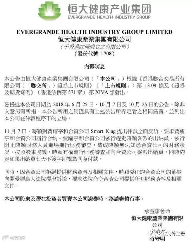 今年10月7日,恒大的一纸公告让公众看到两家已经翻脸。公告中表示,Smart King Ltd.于10月3日向香港国际仲裁中心提出仲裁,要求剥夺恒大旗下时颖公司作为股东享有的融资同意权,并解除所有协议。