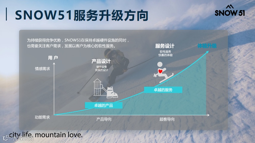 SNOW51有一个 slogan 是「From zero to Hero」,SNOW51如同生产线一般, 生产线的起始端是零基础的Zero用户,在生产线的终端,用户可以变成一个滑雪Hero。从认识品牌——上体验课——成为会员。在这个过程中,我们如何触达他的技术进步、跟其他的生活链路乃至一些社交,最后如何将用户变成 royal customer ,使他成为粉丝级别的忠诚用户。这些打造用户心智的能力才是真正的核心竞争力。