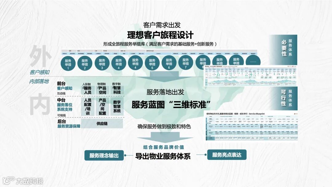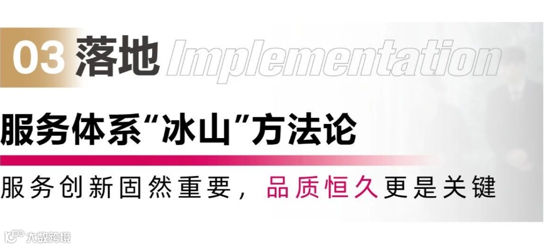 冰山下的部分,则是从服务落地视角出发的“三维标准”,涵盖前、中、后台的协同规划,确保服务落地的极致与独特,确保服务的可行性。