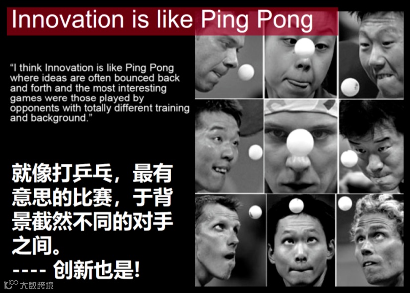 “就像打乒乓球,最有意思的比赛,于背景截然不同的对手之间。—— 创新也是!”